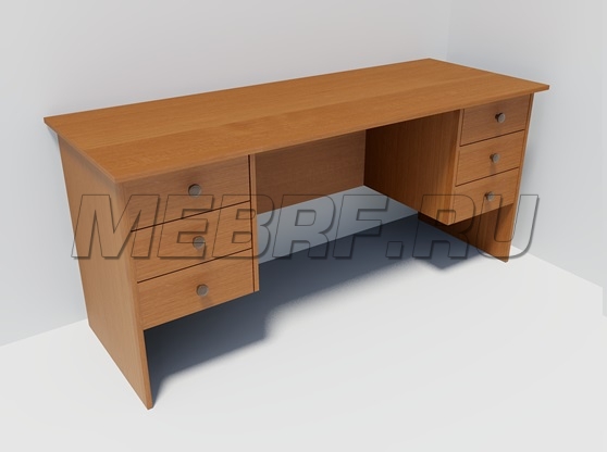 Стол письменный с двумя встроенными тумбами, в обеих тумбах предусмотрены по три выдвижных ящика
